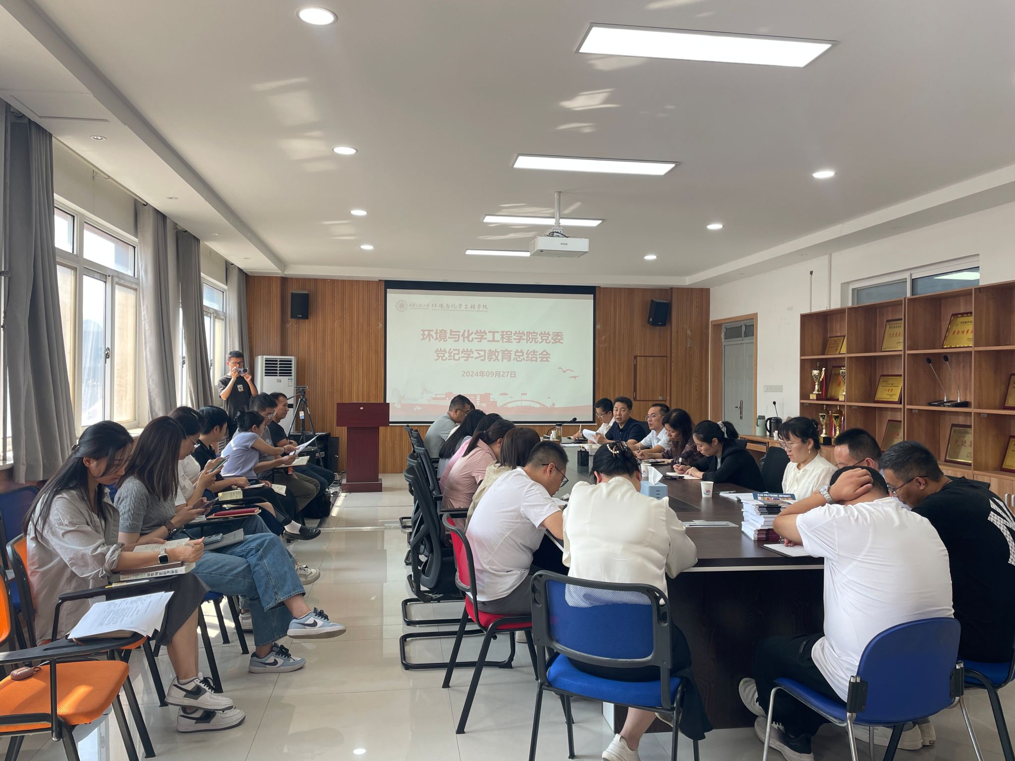 9月27日下午,环境与化学工程学院党委于学院507会议室召开党纪学习教育总结会。学院党委委员、党政领导班子、师生党支部书记及教师党员代表参加会议,会议由学院党委书记胡西民主持。