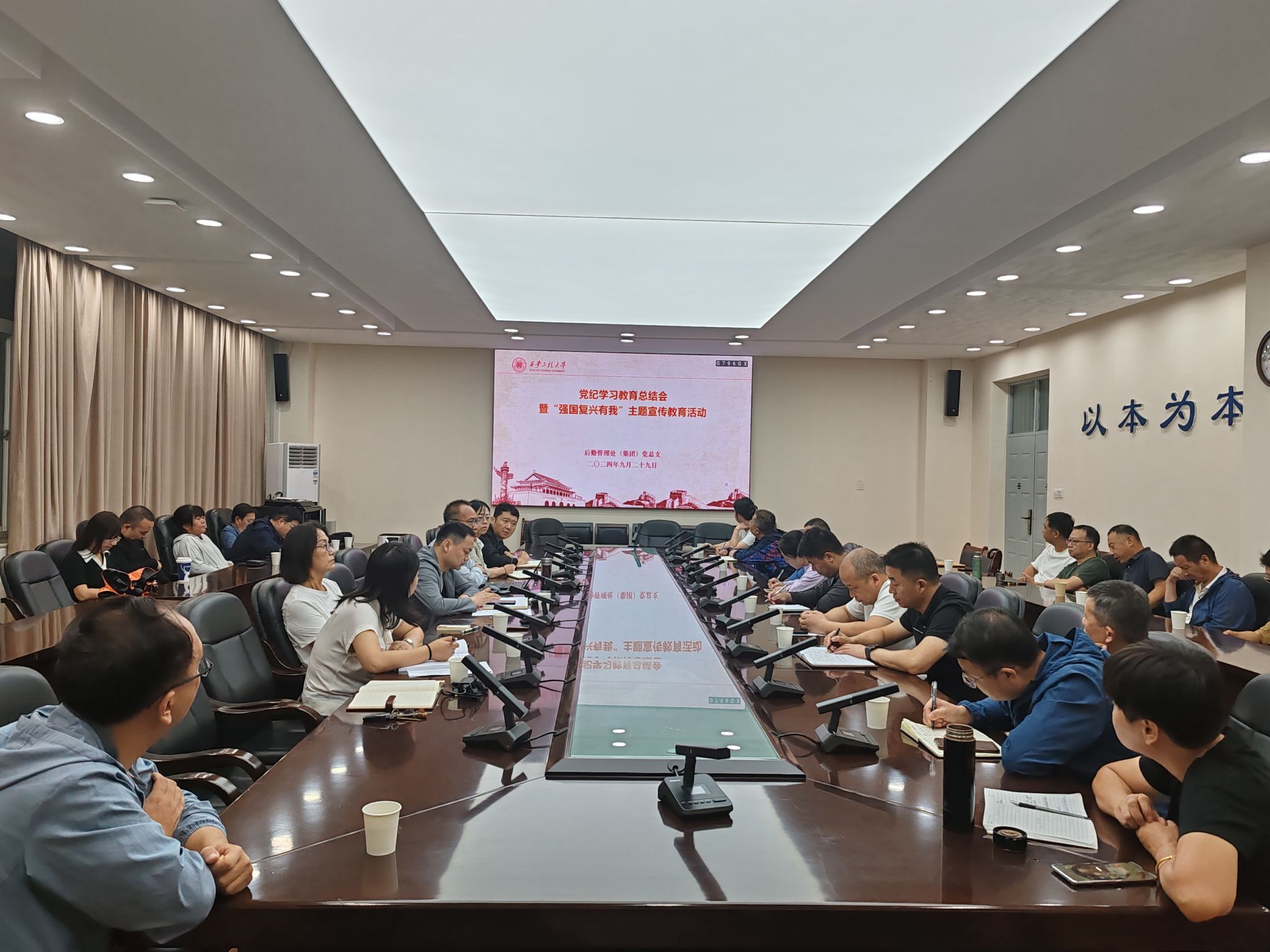 9月29日上午,后勤管理处(集团)党总支在临潼校区召开党纪学习教育总结大会并安排布署相关工作,后勤全体职工参加会议。会议由党总支书记杨森主持。