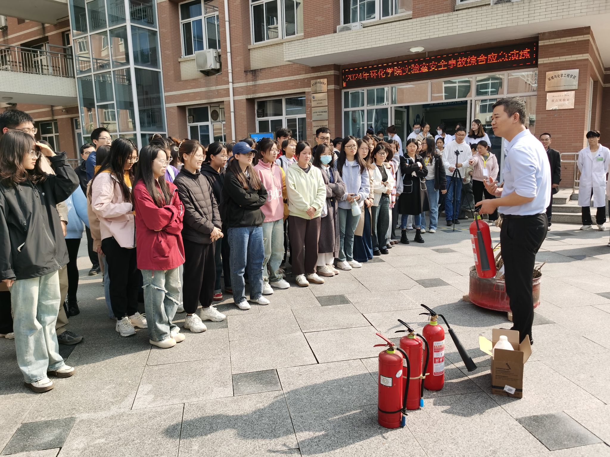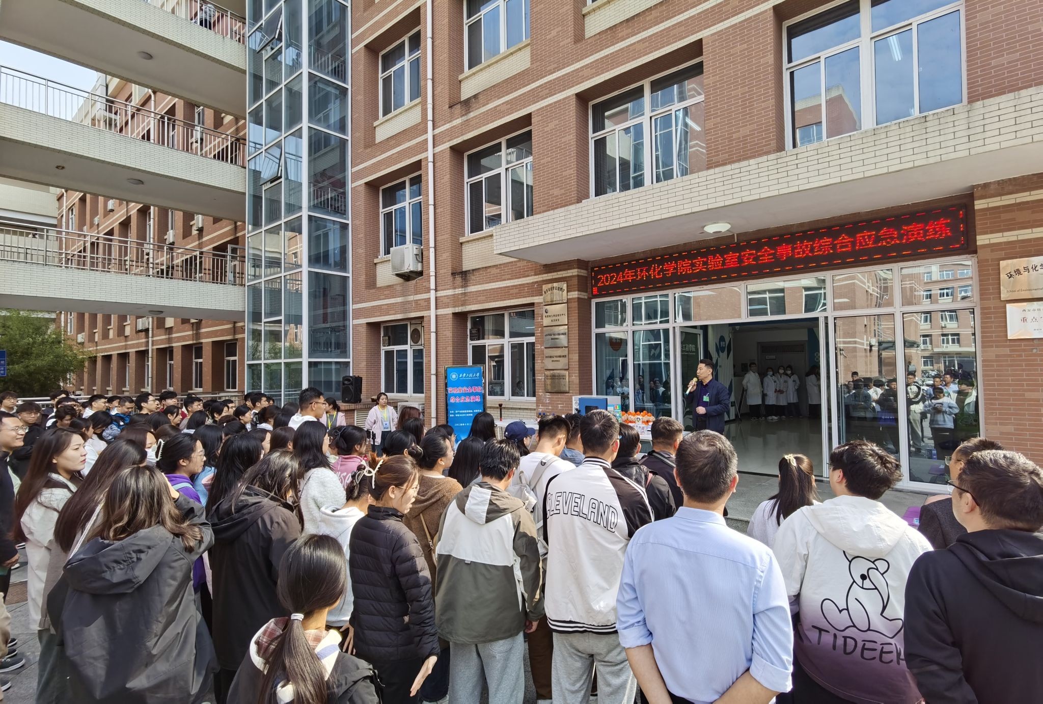 10月25日,环境与化学工程学院组织开展了2024年实验室安全事故综合应急演练,进一步提升学院实验室应急响应能力,提高现场处置突发事件的实战技能和水平,有效预防、快速应对、及时控制实验室安全事件。此次演练由校稳定办、校资产与实验室管理处主办,环化学院承办,特邀西安安备思软件有限公司总经理刘涛主讲,相关部门负责人、环化学院各实验室管理人、研究生导师、全体研究生观摩演练,演练由环化学院党委书记胡西民主持。