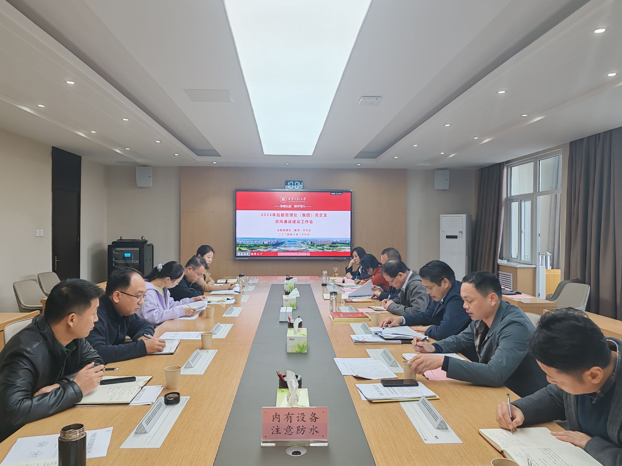 10月29日,后勤管理处(集团)党总支召开2024年党风廉政建设会,推进党风廉政建设和后勤管理集中整治工作,持续营造风清气正、健康和谐的校园服务保障环境。副校长张洛红,校纪委副书记巩雪松出席会议,会议由后勤管理处(集团)党总支书记杨森主持。