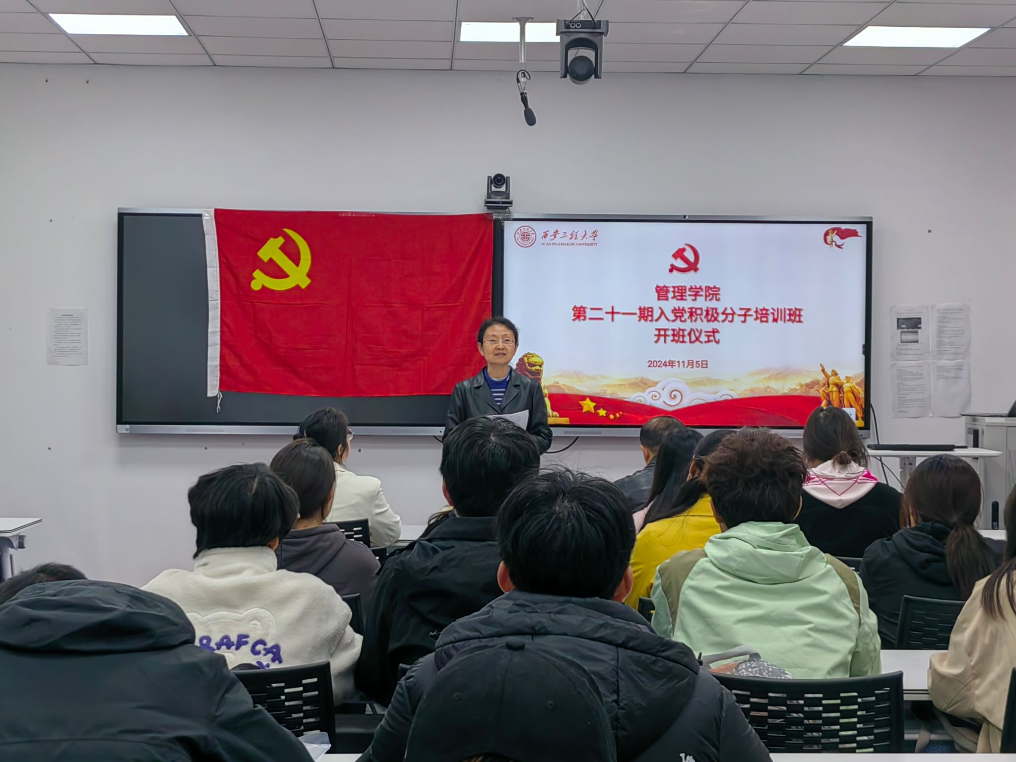 为深入学习贯彻习近平新时代中国特色社会主义思想和党的二十届三中全会精神,进一步加强对入党积极分子的培养、教育和考察,提高积极分子的思想政治素质和理论水平,11月5日中午,管理学院在临潼校区人文管理楼502室举行学院第21期入党积极分子培训班开班仪式。院党委书记王爱华、院党委副书记代锴、各学生党支部书记以及33名入党积极分子参加开班仪式。仪式由兼职组织员吴昌敏主持。